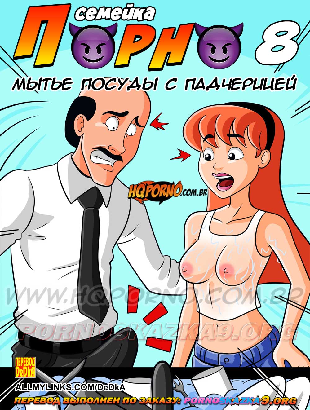 Читать далее 31 Июл 2025 12429 0Порно комикс «Семейка порно 8: Мытье посуды с падчерицей.»
