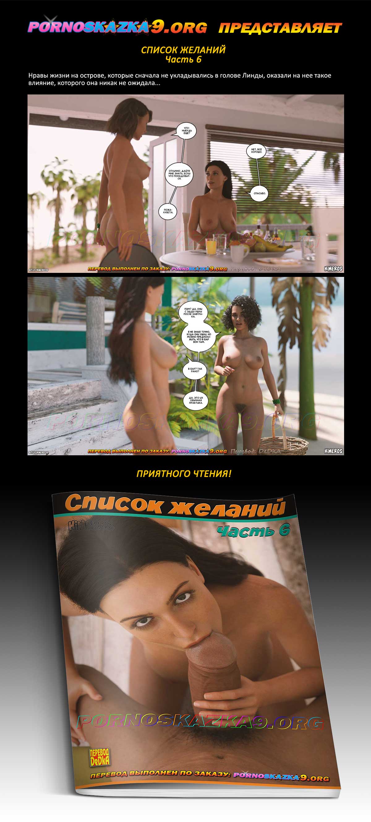 Порно комикс «Список желаний. Часть 6». Нравы жизни на острове, которые сначала не укладывались в голове Линды, оказали на нее такое влияние, которого она никак не ожидала…